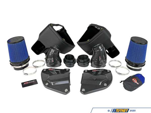With all the carbon cobweb used on this Black Series' intake, you'll be in awe every fourth dimension you popular the hood. It'due south aggressive blueprint, all the way down to its custom-made air filters and aFe POWER branded hardware, makes it fit for an One thousand. Outflows Manufacturing plant Intake past 16% Measured Flow: 665 CFM @ 7" H2o 100% Carbon Cobweb Housing Covers and Tubes w/ Oestrus Resistant Plastic Housings Washable and Reusable Pro 5R Air Filters for Maximum Operation Premium aFe POWER Branded Light amplification by stimulated emission of radiation-Etched Hardware and Exclusive Black Serial Plate Included Custom-Made Five Layer Performance Air Filters: These 7" tall, 360-degree radial flow air filters were specially designed to be installed through the M5'southward strut braces, maximizing airflow and making for an easy installation. They feature our high-flowing pre-oiled Pro 5R media with five layers of progressively finer cotton wool gauze media for maximum functioning. This media is perfect for street and/or track use. Unique Plastic Housings w/ Carbon Fiber Covers: The air filters are surrounded by heat-resistant XLPE polymer housings. Covers, synthetic from 100% twill weave carbon fiber, are secured to the housings with premium aFe Power branded hardware - making for an ambitious way and simple air filter inspection. Dyno-Tuned Carbon Fiber Intake Tubes: Lightweight, high gloss, twill weave carbon cobweb tubes direct filtered air from the air filters to the engine. Using calculator blueprint software and dyno tuning, they're designed to attain maximum ability gains while maintaining a perfect fit. Premium Components: This is a straight fit intake arrangement that utilizes factory mounting points and requires no cutting or modifications. All necessary clamps, couplings, premium hardware, and a Black Serial plate are included. Optional Carbon Fiber Dynamic Air Scoops: Optional 100% carbon cobweb Dynamic Air Scoops (sold separately P/N: 58-10005SC) are available to bring more cool air from the kidney grilles into the intake housings. Emissions Disclaimer: This product is not currently CARB exempt and is not available for buy in California or for use on any vehicle registered with the California Department of Motor Vehicles.